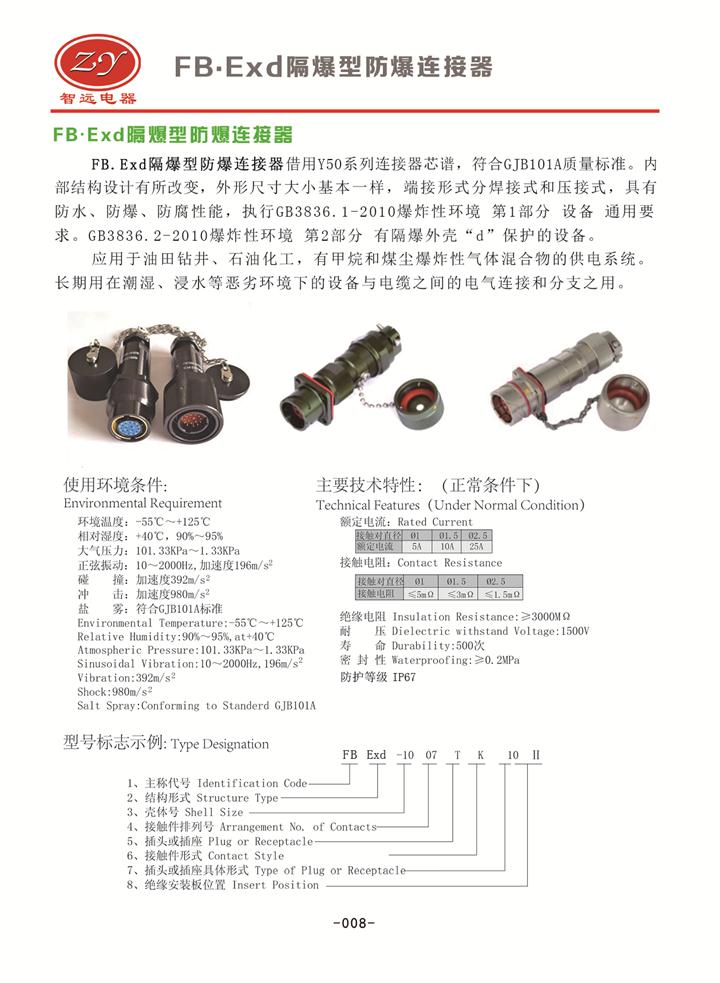 EXd小體積多芯防爆電連接器,產(chǎn)品型號種類多,芯數(shù)多少不一樣,電流大小不一樣,尺寸大小與GJB101A標(biāo)準(zhǔn)Y50系列航空插頭一樣,壁體加厚,重量偏重,經(jīng)得住摔倒碰撞,連接處有密封層設(shè)計,一般用于有氣體混合物,或者有火源著火點(diǎn)的場所設(shè)備電氣的控制。