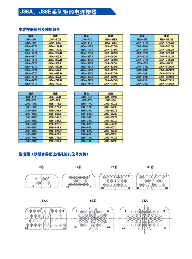 J36A,E矩形航空接插件,執(zhí)行Q/HD20038-2007詳細規(guī)范,屬于儀器式電連接器。具有體積小、密度高、規(guī)格齊全、雙保險鎖緊結(jié)構(gòu)、可靠性高等優(yōu)點,端接形式為焊接式和直插印制板式。廣泛應用于航天、航空、兵器、艦船、通訊、計算機等行業(yè)的設備儀器艙內(nèi)部電信號連接。