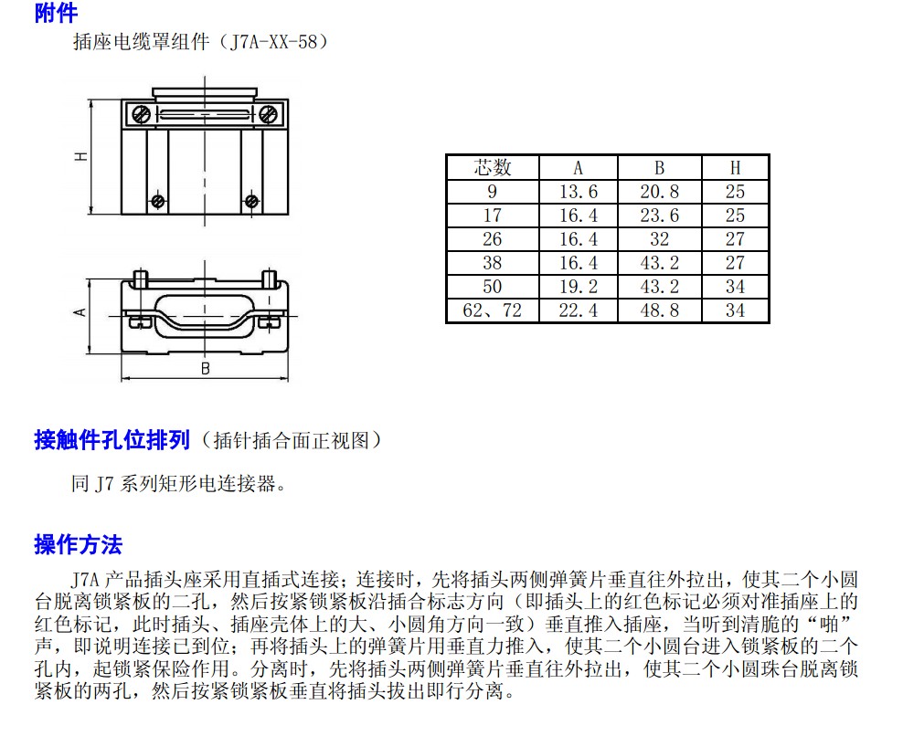 J7A線簧孔矩形電連接器適用于電子、電氣設備系統(tǒng)之間的電路連接。