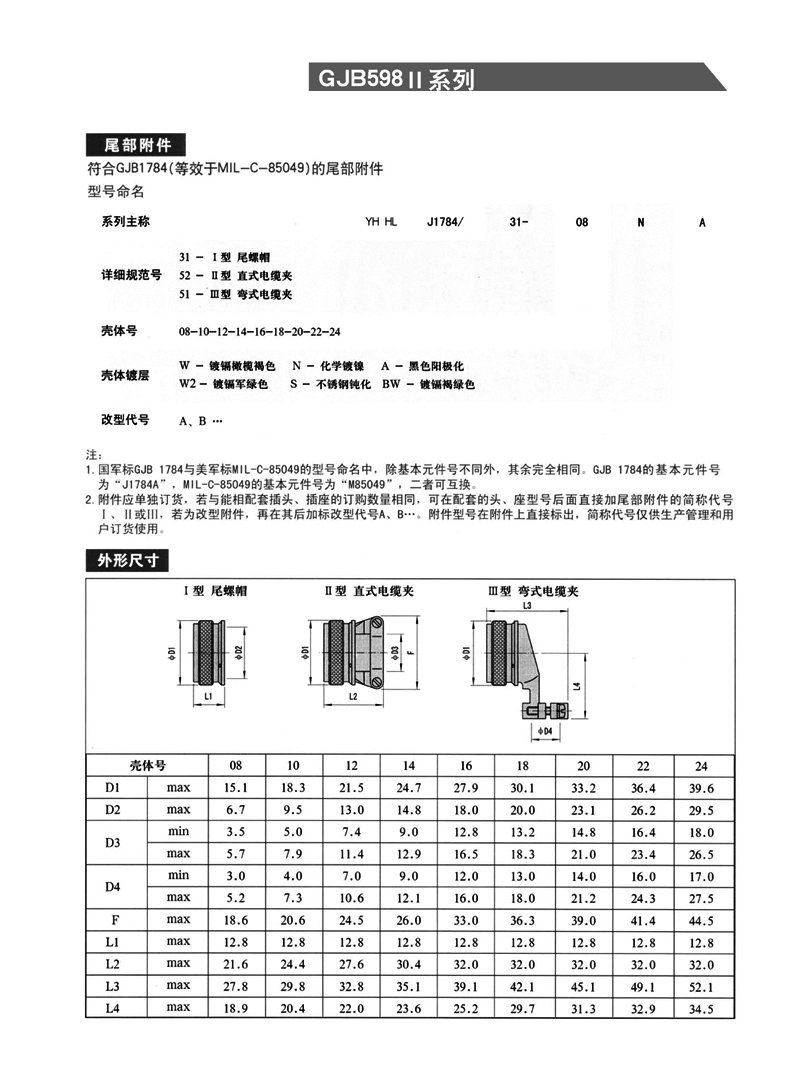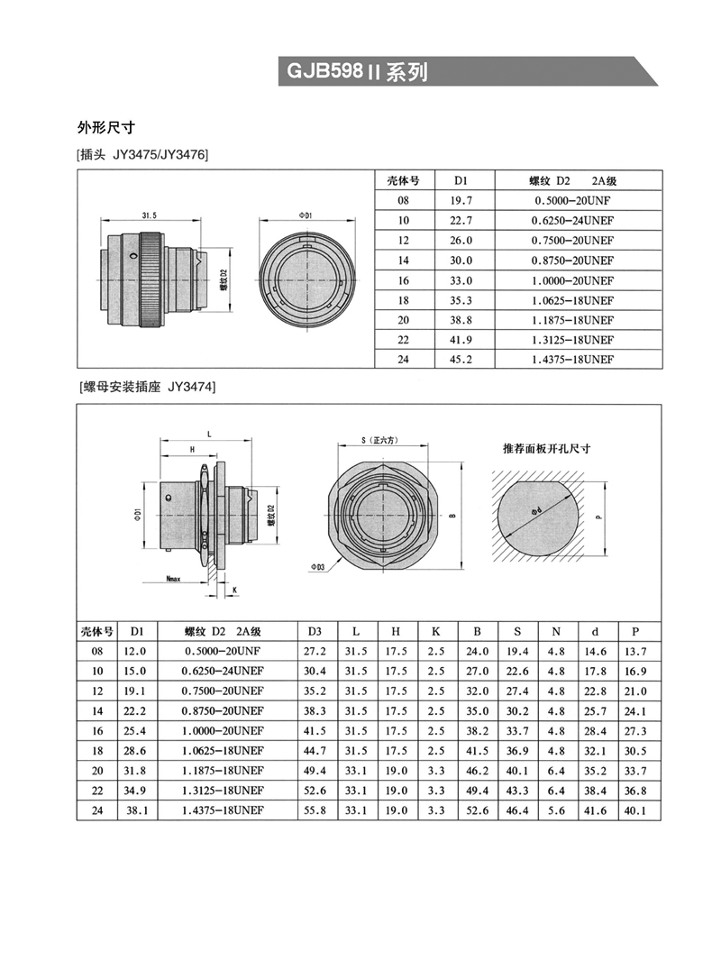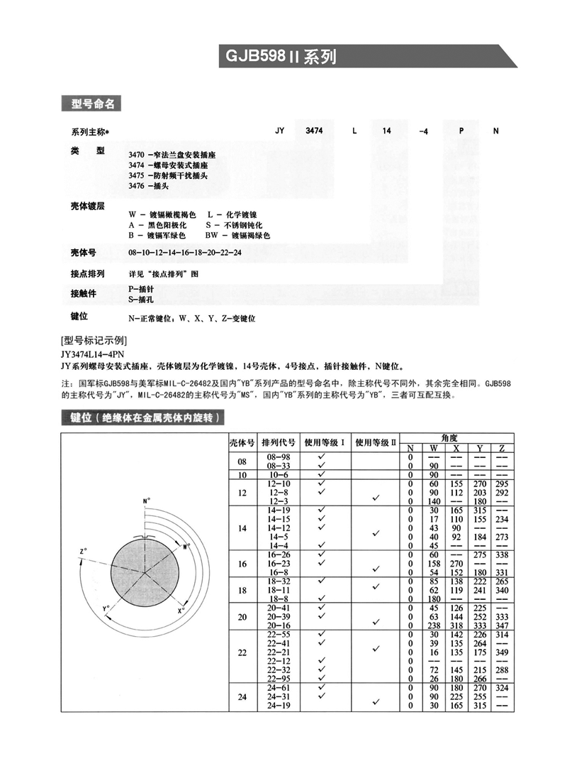 GJB598II(JY3476)系列圓形軍用航空插頭,GJB598Ⅱ(JY3476)系列 圓形航空接插件