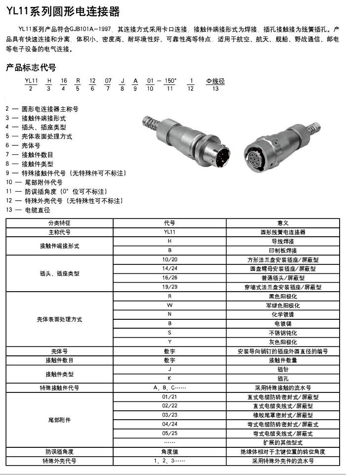 • YL11H系列圓形航空插頭