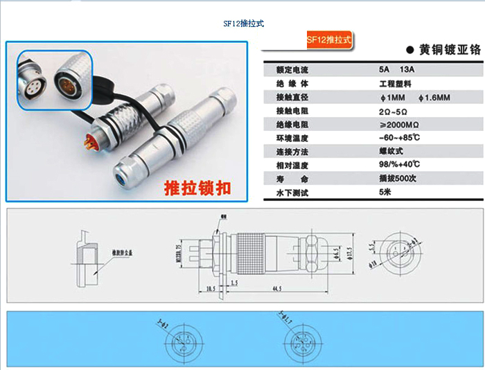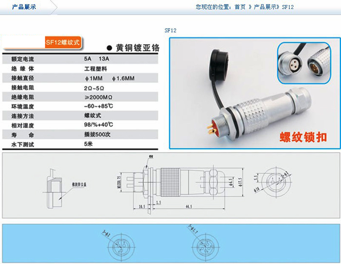 SF12系列條形防水電連接器,是根據(jù)以前XS12型連接器升級改造,能防水,在推拉方式基礎(chǔ)上,增加了螺紋連接方式。