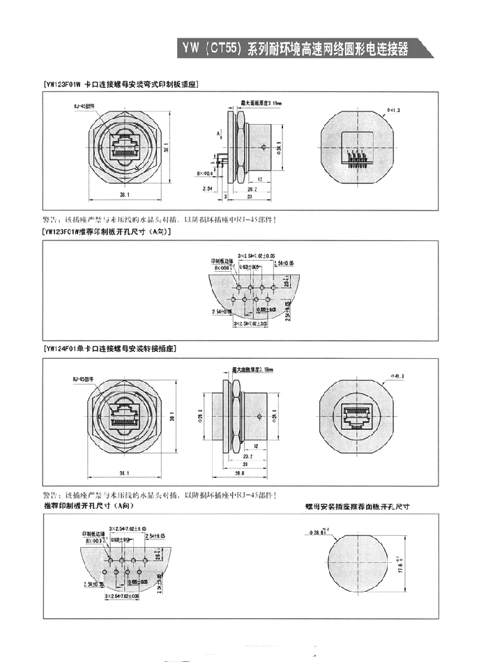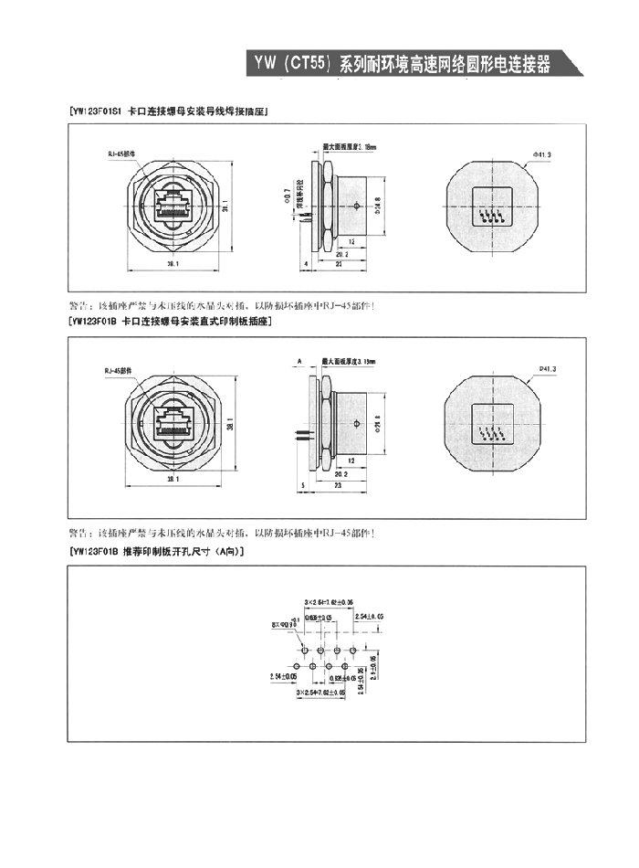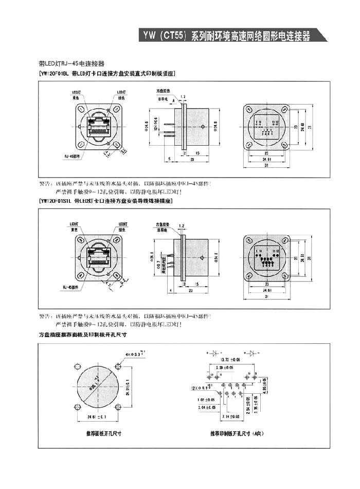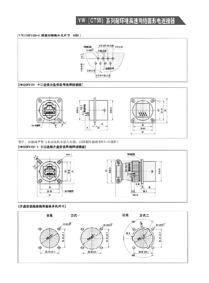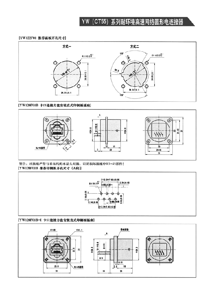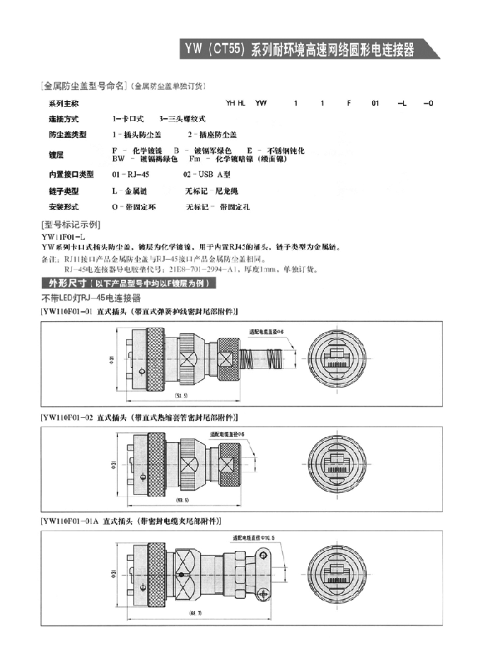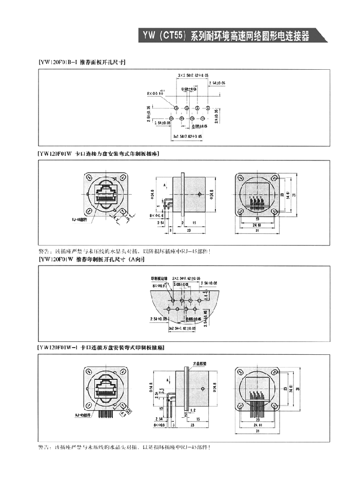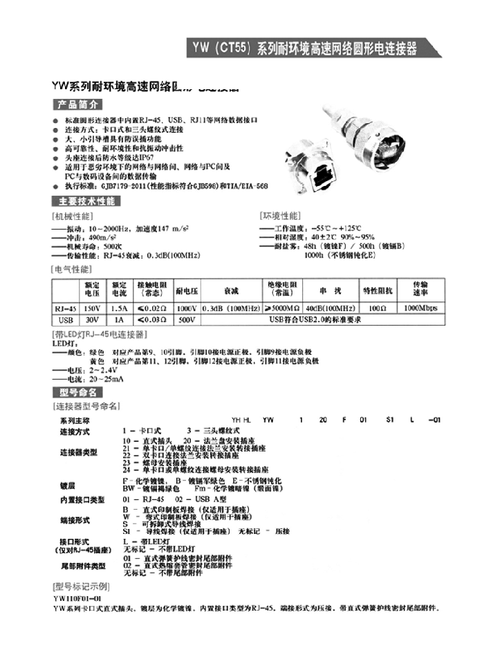 YW系列耐環(huán)境高速網(wǎng)絡(luò)圓形電連接器,是將USB網(wǎng)絡(luò)數(shù)據(jù)接口集成于標(biāo)準(zhǔn)圓形連接器中,以提高網(wǎng)絡(luò)信息傳輸?shù)目煽啃浴⒛铜h(huán)境性和抗振動(dòng)沖擊性,同時(shí)也具有連接快速,安裝及接線方便等優(yōu)點(diǎn)。是一種高可靠的新型網(wǎng)絡(luò)連接器,特別適用于惡劣環(huán)境下的網(wǎng)絡(luò)與網(wǎng)絡(luò)間、網(wǎng)絡(luò)與PC間及PC與數(shù)碼設(shè)備間的數(shù)據(jù)傳輸。