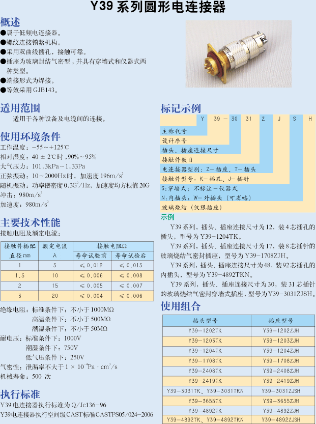 Y39-4ZJH真空密封圓形電連接器,螺紋連接鎖緊機(jī)構(gòu),采用雙曲線插孔,玻璃燒結(jié)氣密型插座,并具有穿墻式和儀器式兩種類型。端接形式為焊接。等效采用GJB143。